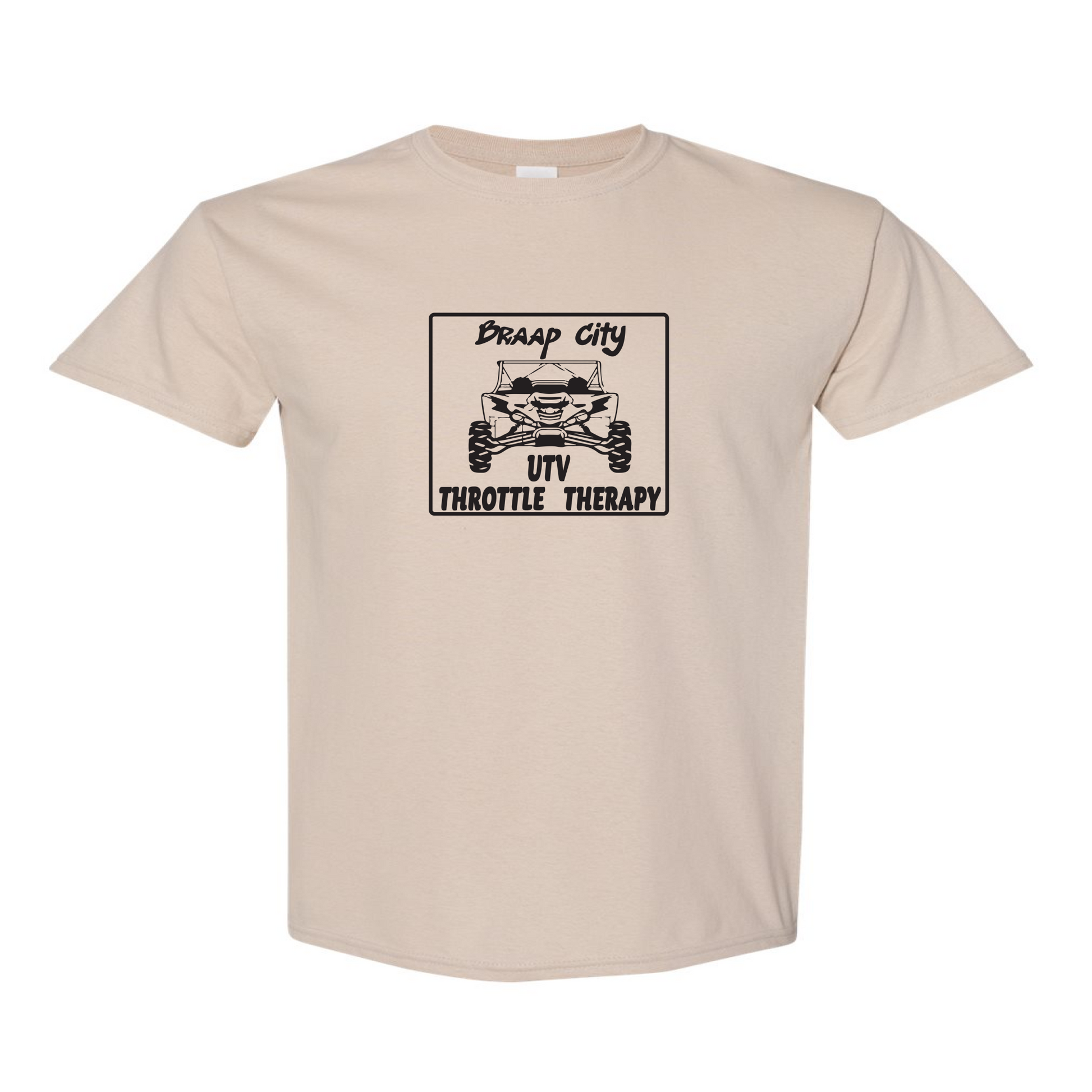 The Throttle Therapy YXZ SXS Cream T-Shirt features a sleek black design with the iconic Braap City logo, and the Yamaha YXZ. Stay comfortable and stylish while showing off your love for off-roading.